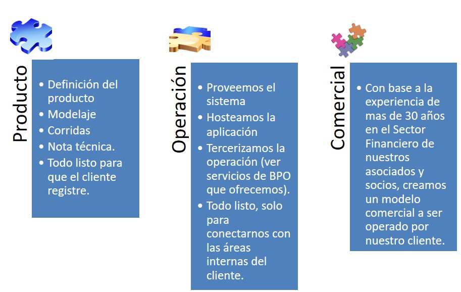 En la experiencia particular de nuestros socios y asociados de poco mas de 25 años dentro del sistema financiero a nivel individual y poco mas de 90 años de manera conjunta, hemos optado por iniciar con cinco alternativas que consideramos pueden ser viables para un crecimiento dadas las características de competencia, entorno económico y nuestro entendimiento de los mercados. Algunas de las opciones con las que contamos son: